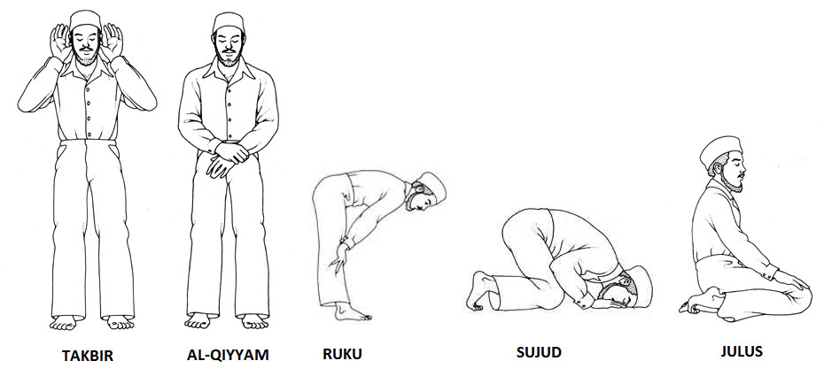 The Imam (Religious Leader): Raises his hands and verbally says "Allah u-Akbar {Allah is Great}.